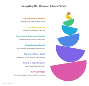 Over-posting sponsored content erodes audience trust faster than almost anything else — followers who feel they’re being sold to constantly will disengage, and a disengaged audience makes your NIL profile significantly less attractive to future brand partners. Neglecting academics in pursuit of brand deals is a self-defeating strategy, since GPA and eligibility requirements don’t pause for business obligations, and losing academic eligibility eliminates your athletic platform entirely.